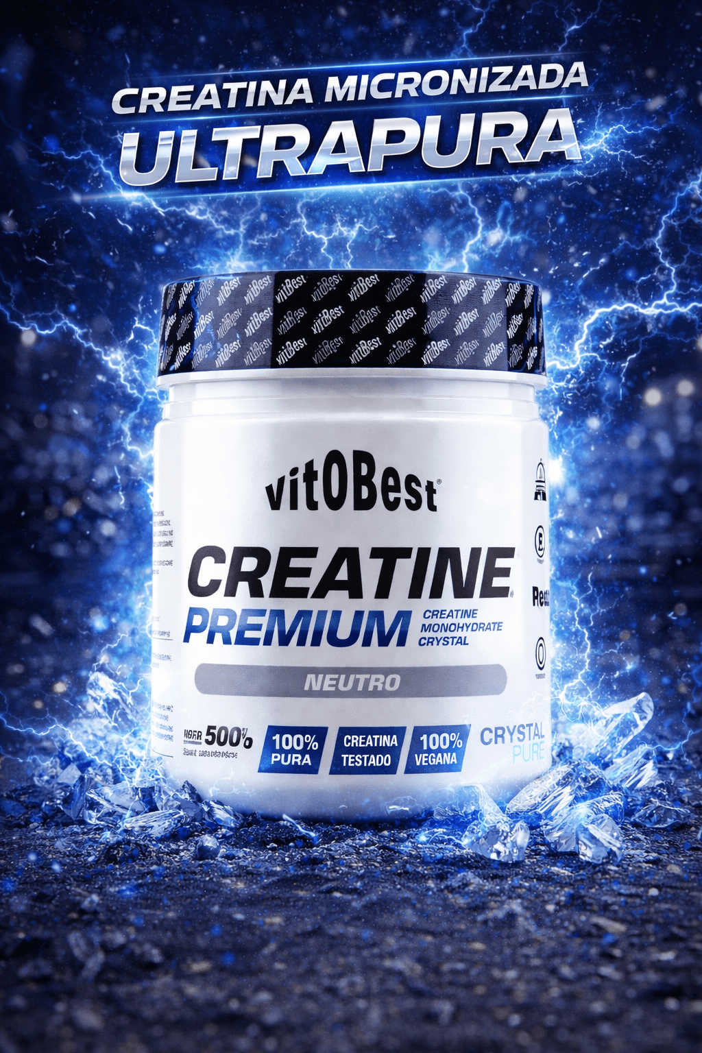 Creatine Premium, de Vitobest®, está elaborada con Cr-ystalPure®, una marca registrada de NATURingredients.